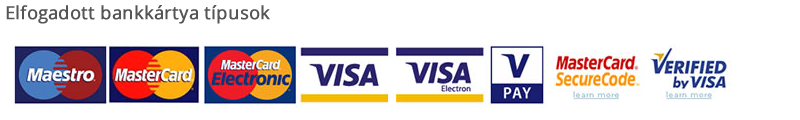 A kizárólag elektronikus használatra kibocsátott bankkártyákat csak abban az esetben fogadhatjuk el, amennyiben annak használatát a kártyát kibocsátó bank engedélyezi! Kérjük, érdeklődjön bankjánál, hogy az Ön kártyája felhasználható-e interneten keresztül lebonyolítandó vásárláshoz.